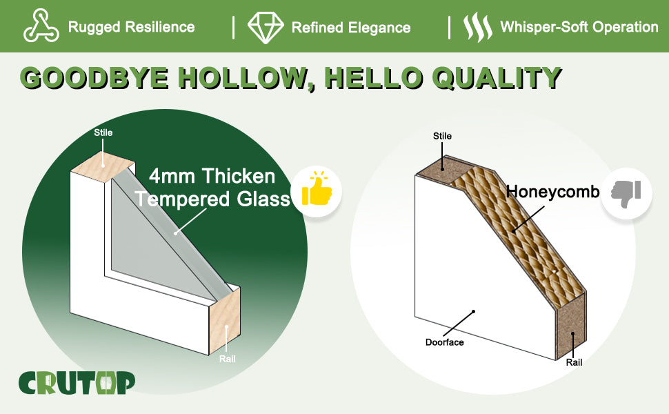 🛡️ 【Premium & Safe Materials Only】 The wooden part of the door is made of MDF and covered with PVC film, so it won’t warp due to moisture. The glass part is made of tempered frosted glass, which effectively protects your privacy. It’s an excellent choice for space partitioning.