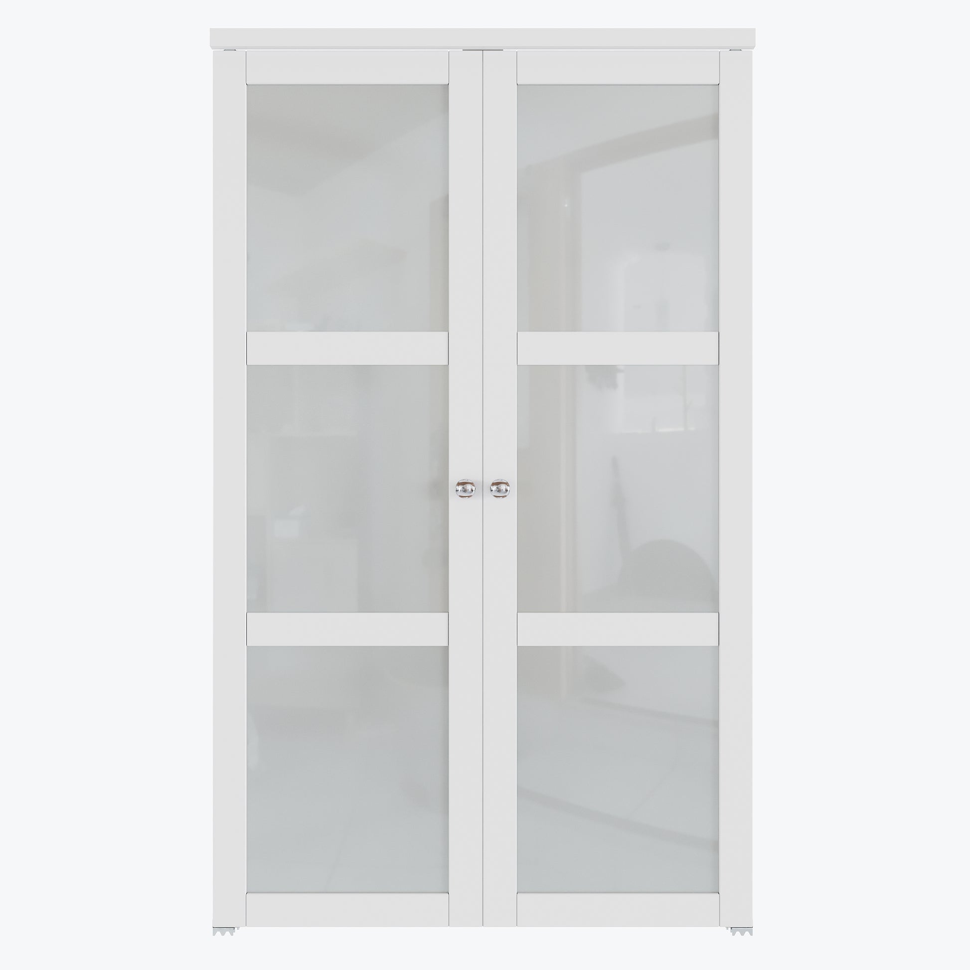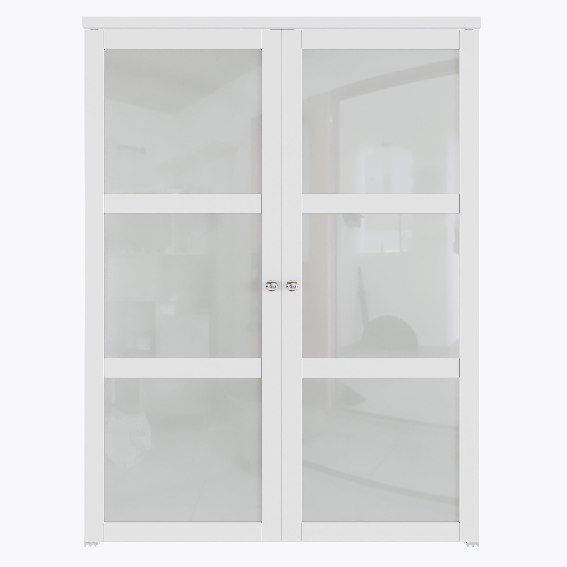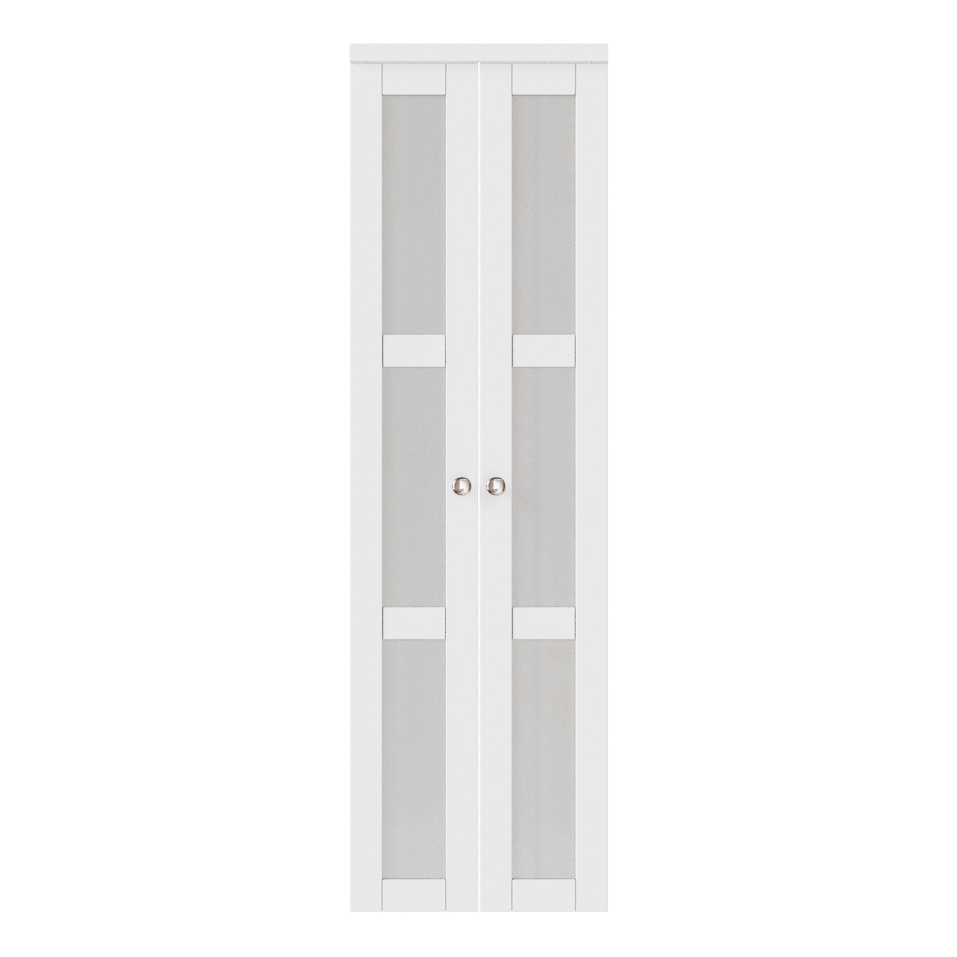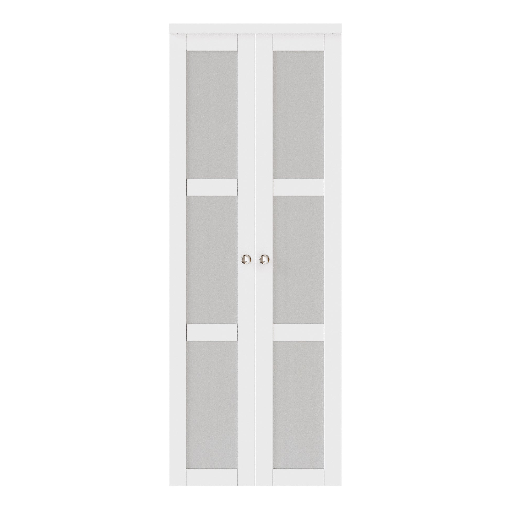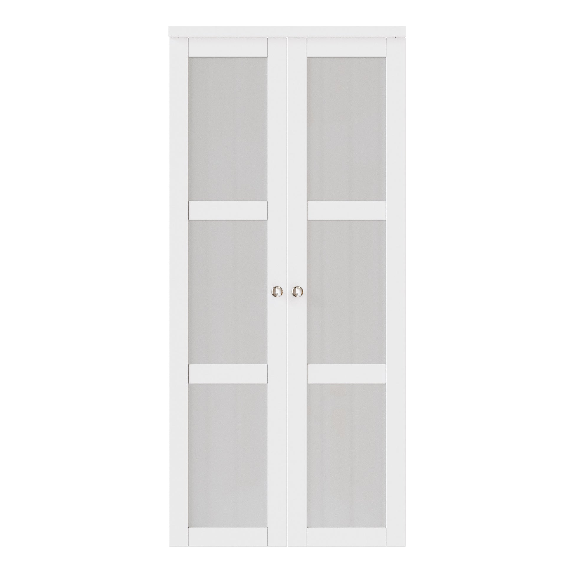 CRUTOP 3-Lite Tempered Frosted Glass Pivot Swing Door for Pantry Laundry with Pivot Hardware, Double Doors for Closet, Bifold Door Alternative - White
