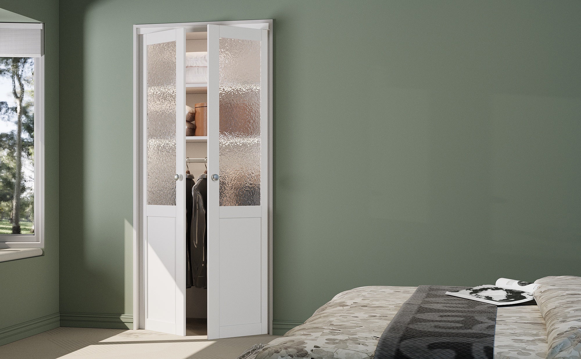—Bifold and Pivot—providing flexible solutions for different spaces. It saves space, adapts to various home layouts, and adds a stylish touch, making it a practical and aesthetic choice for your home.